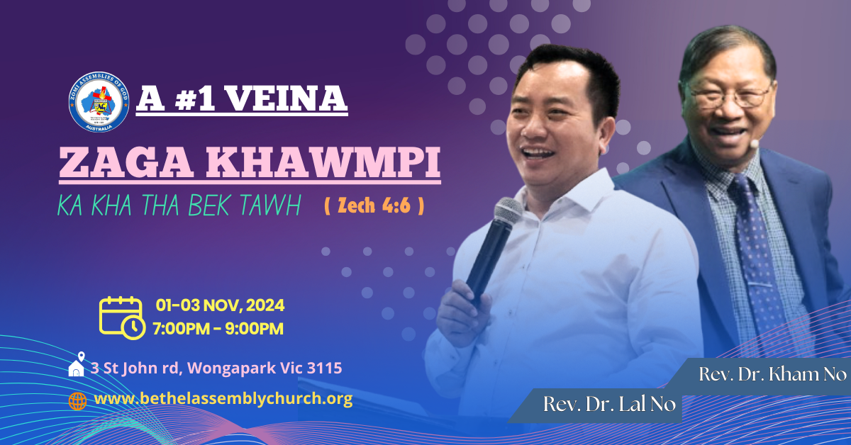 tawh a (1) veina Conference neih ding gelna ii nei aa, hih pawipi sungah ei Zomi te sungah Pasian mizat mahmah ahi ii siapi te ahi, Rev. Dr. Sia Lalno (India) leh Rev. Dr. Khamno (USA) te in zong thusinna (Seminar) leh revival service te tawh nasiatak in hong makaih ding a, Phatna biakna sungah Pasian mizat mahmah worship makai leh